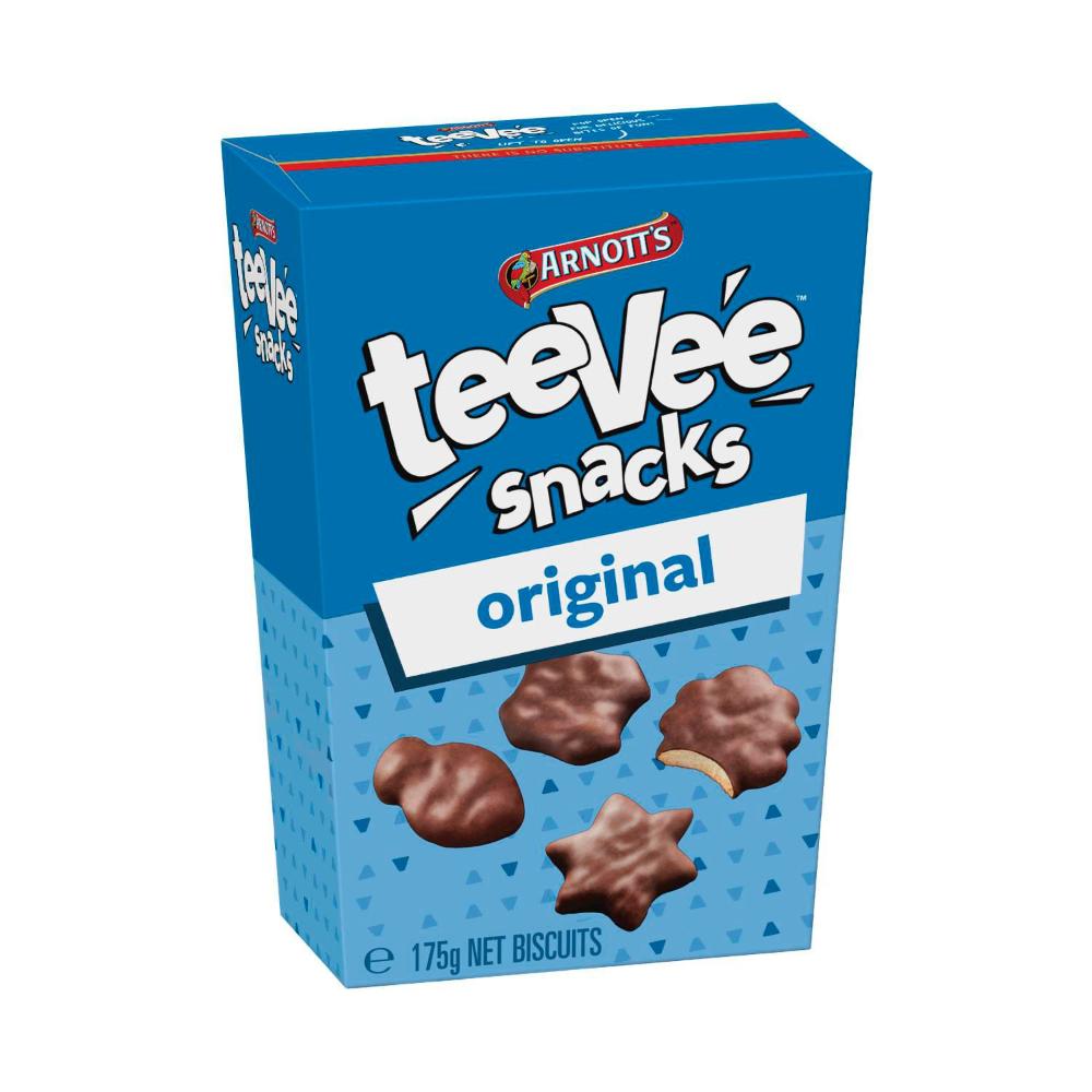 Arnotts TeeVee Snacks Original are the bite-sized chocolate biscuits made for fun moments and casual cravings. Covered in smooth milk chocolate, these crunchy Aussie classics are perfect for sharing with friends, decorating party cakes, or enjoying during your favorite TV show.