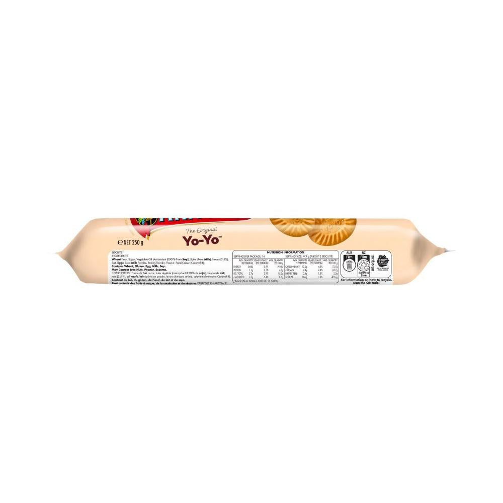 Arnott's Yo-Yo Biscuits—also known simply as Yo Yos—are a beloved South Australian classic, famous for their subtle sweet honey flavor and golden crunch. Baked to perfection since 1922, these iconic Aussie biscuits are perfect for pairing with a cuppa or enjoying all on their own.