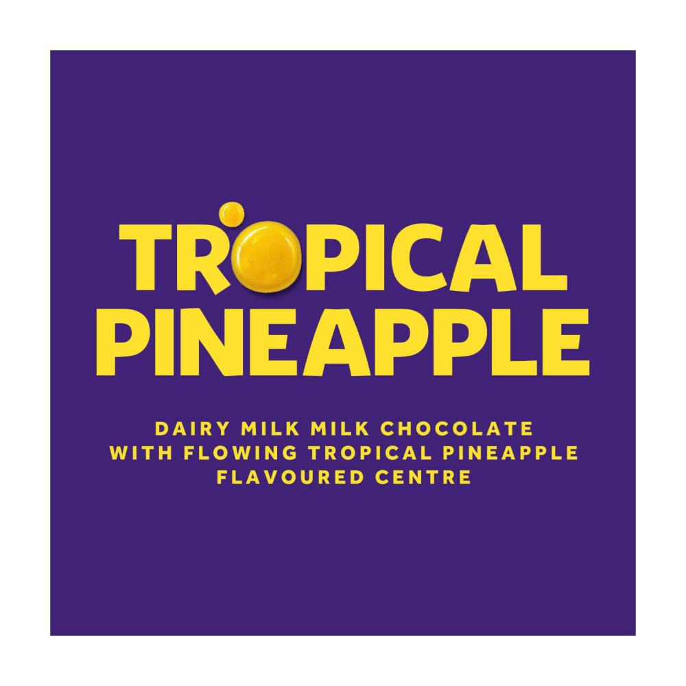 Bring a taste of sunshine to your day with a Cadbury Tropical Pineapple chocolate block. Smooth, creamy Dairy Milk chocolate surrounds a soft, flowing tropical pineapple-flavored center, creating a sweet and tangy bite that captures the essence of summer in every square.
