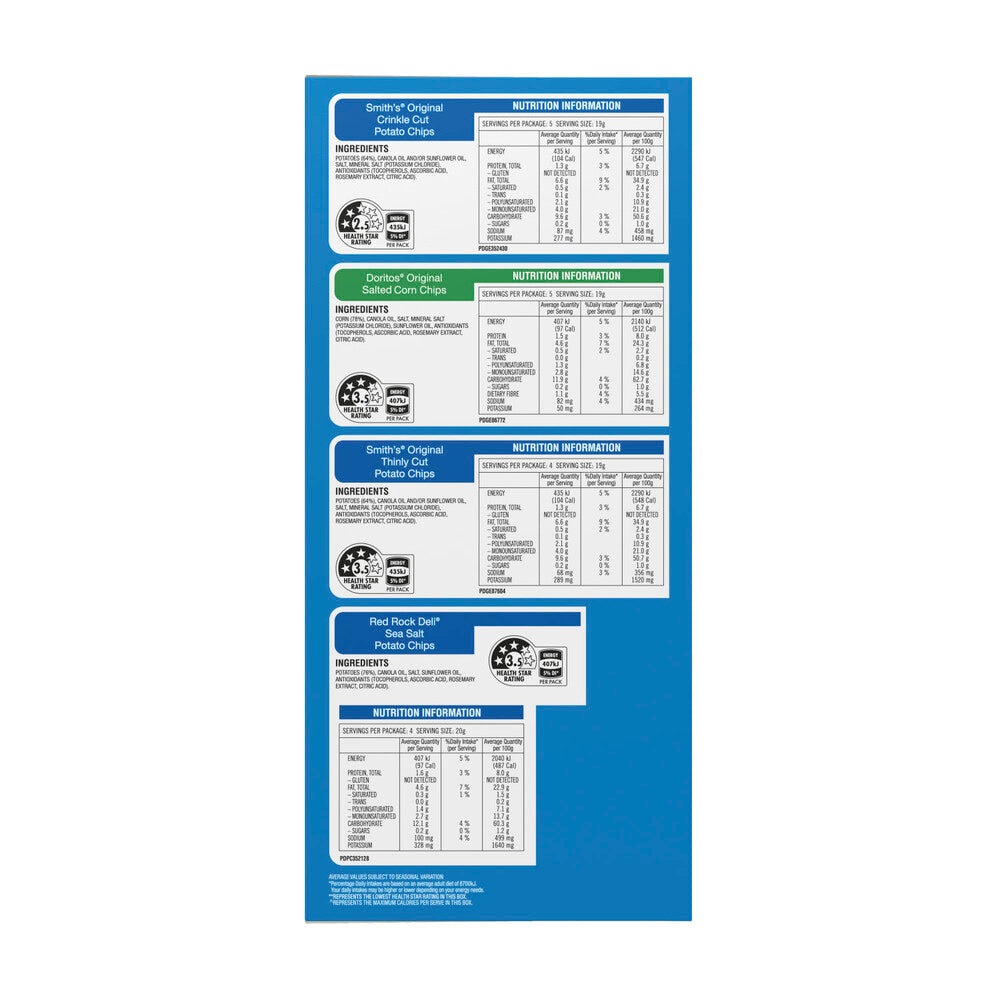 Sometimes, nothing beats the original. The Smiths Original Mix brings together the all-time salted greats in one satisfying snack lineup. Whether you’re into classic crinkle cut, ultra-thin slices, deli-style crunch, or bold corn chips—this multipack has something for every kind of chip lover.