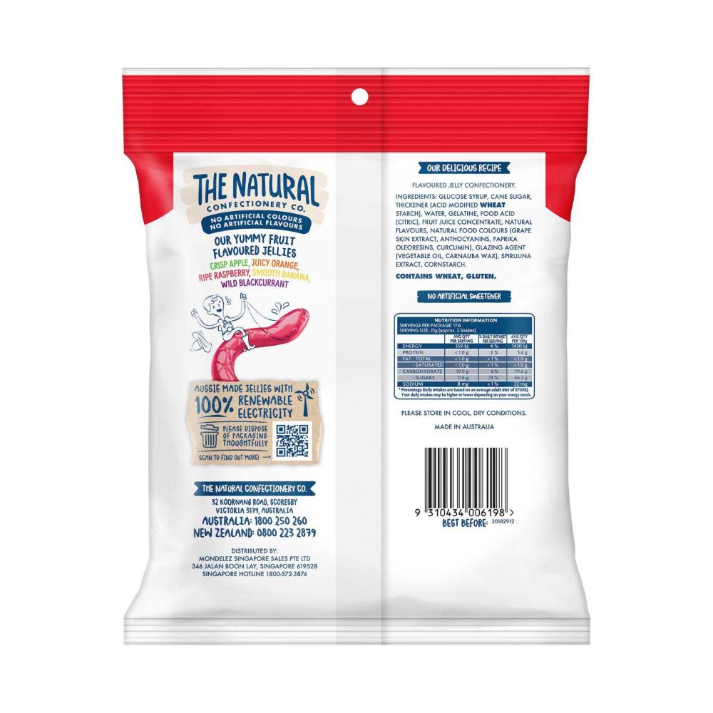 The Natural Confectionery Co. Snakes Lollies bring a wriggly, chewy hit of fruity flavor in every bite. This 440g value bag is packed with snake-shaped jelly candy in juicy orange, wild blackcurrant, smooth banana, ripe raspberry, and crisp apple.